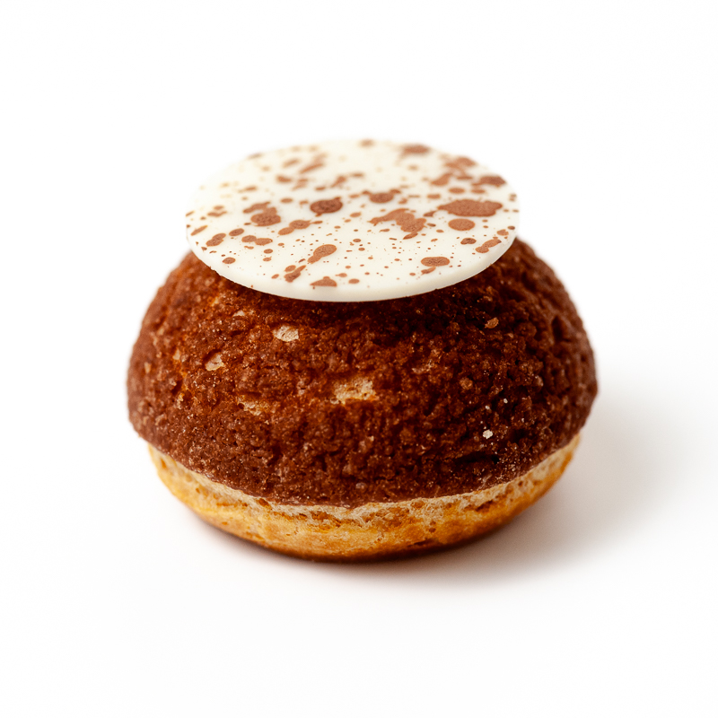 Ganache montée infusée au grains de café de la maison Stoll et crème montée mascarpone.